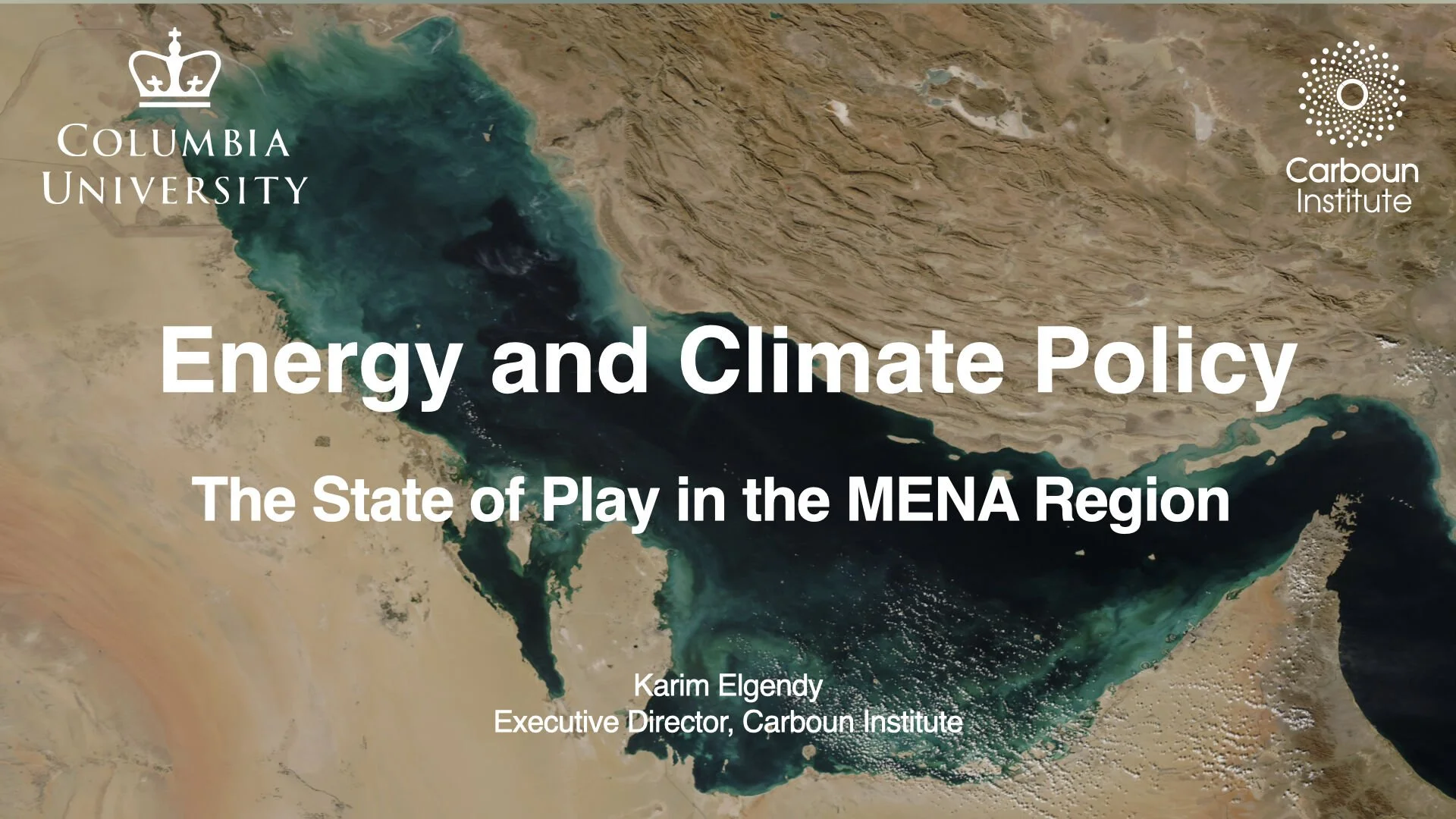 At Columbia University’s Climate School, Carboun Institute’s Executive Director Karim Elgendy delivered a lecture on the state of energy and climate policy in the Middle East and North Africa. His talk examined the region’s progress on renewable energy, emerging climate risks, and the geopolitical factors, including US-China dynamics, influencing the MENA energy transition.